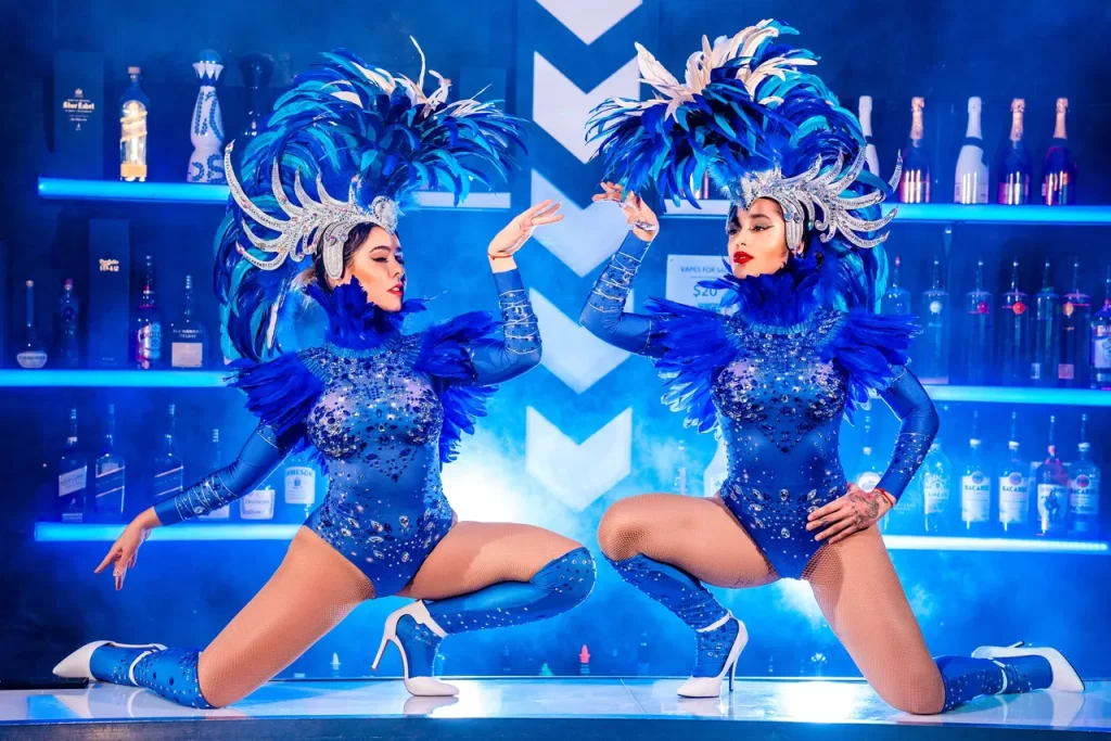 The Blue Emerald Show dazzles with shimmering emerald-toned costumes, elegant choreographies, and a stage presence full of energy. Its style combines glamour, color, and dynamism, creating a unique atmosphere that captivates every guest.